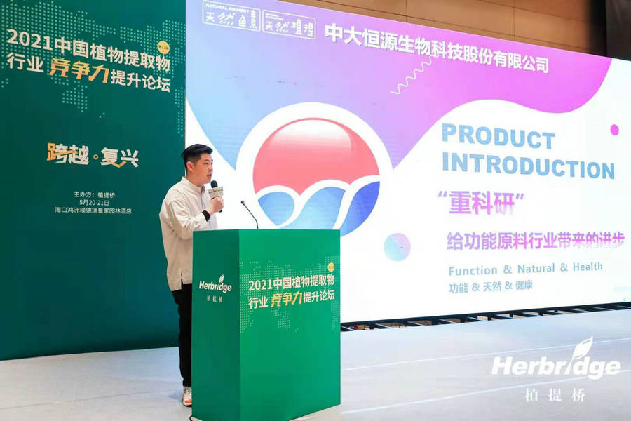 2021年5月20-21日第12届中国植物提取物行业竞争力提升论坛在海口市举行,米兰官方注册销售总经理金子恒应邀参会,并在论坛作了《“重科技”给功能原料行业带来的进步》主题演讲,引发与会人员的广泛关注。